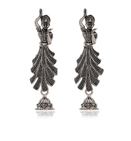 latest Silver plated oxidised Radha Krishna earrings & Silver Beads Ethnic Jhumka/Jhumki