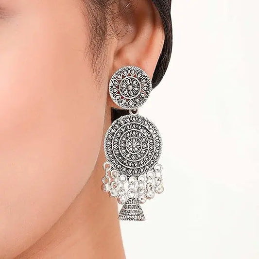 Earrings for Women Traditional Silver OXidised Jhumka Set | German Silver Chand Baliyan & Jhumkas Earrings | Birthday & Anniversary Gift