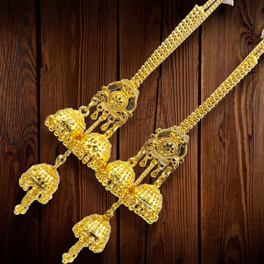 Opulent Gold-Plated Double Curtain Jhumka Earrings – Traditional Indian Bridal Jewelry for Special Occasions