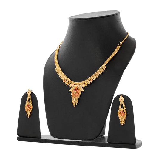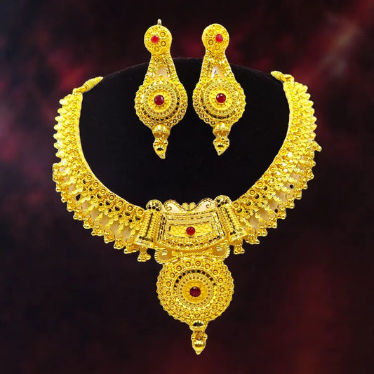 Gold-Plated Necklace Elegant 1 Gram Haram & Earrings Set