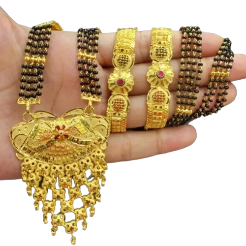 Gold-Plated Mangalsutra with Black Beads for Women